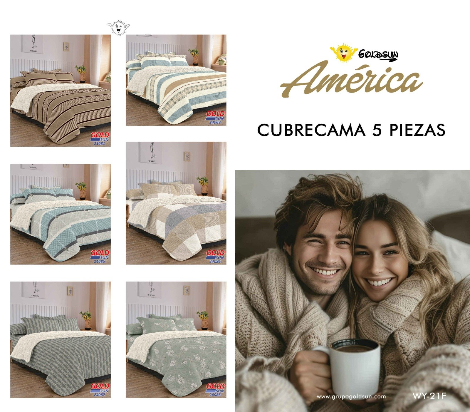 COBERTOR TELA CON TELA ACOLCHADO 5 PIEZAS PREMIUM