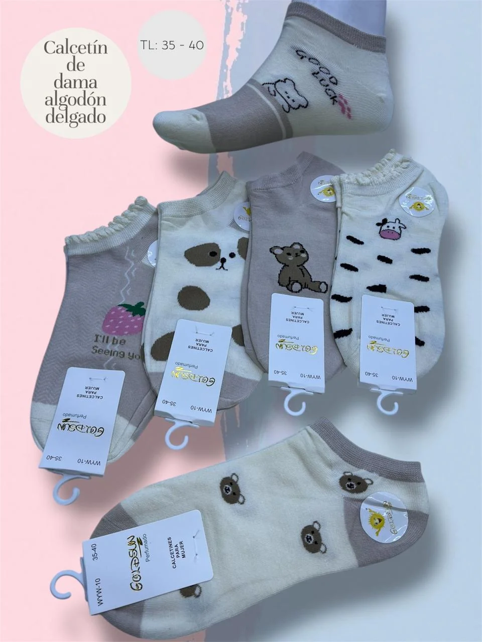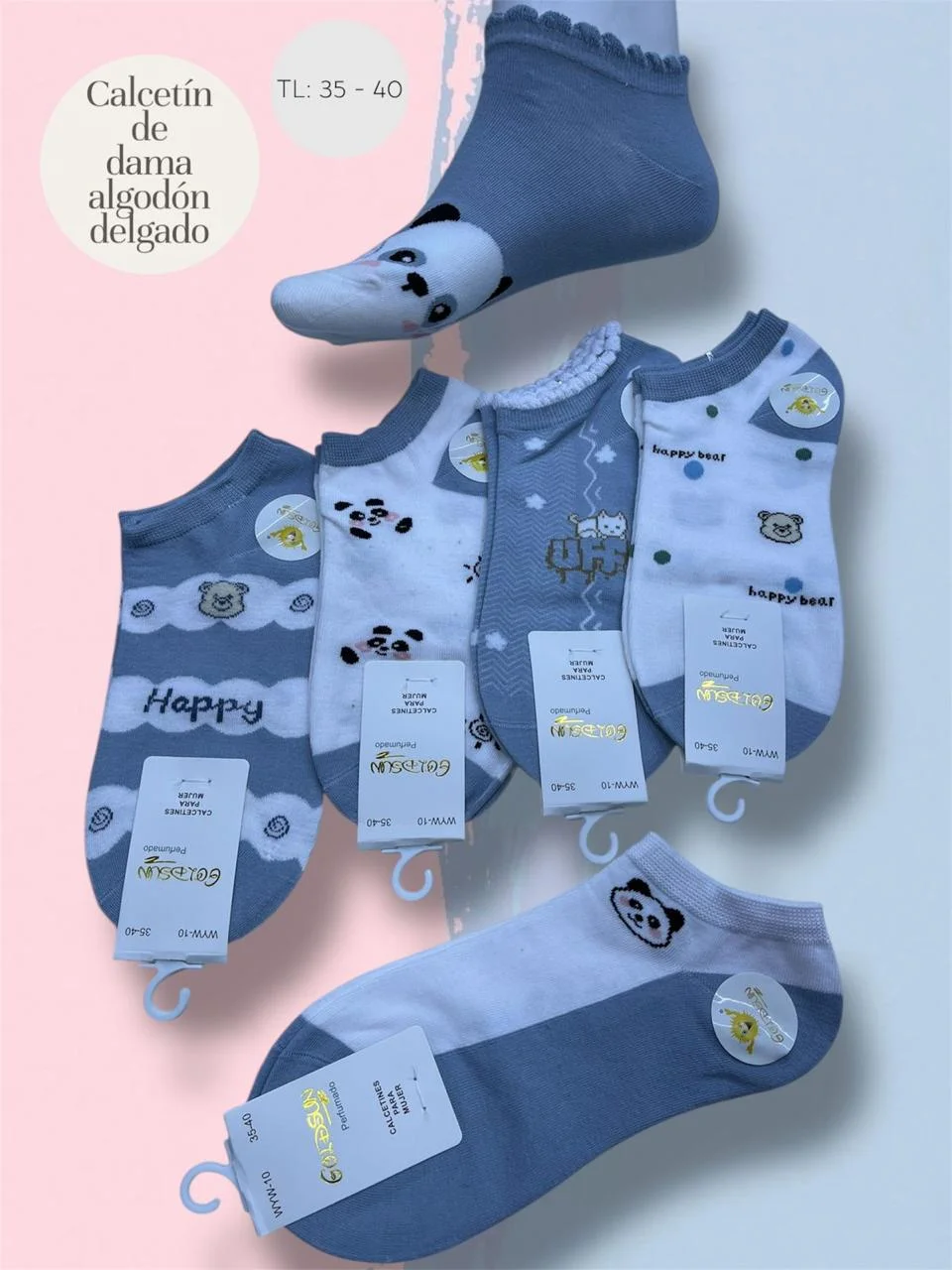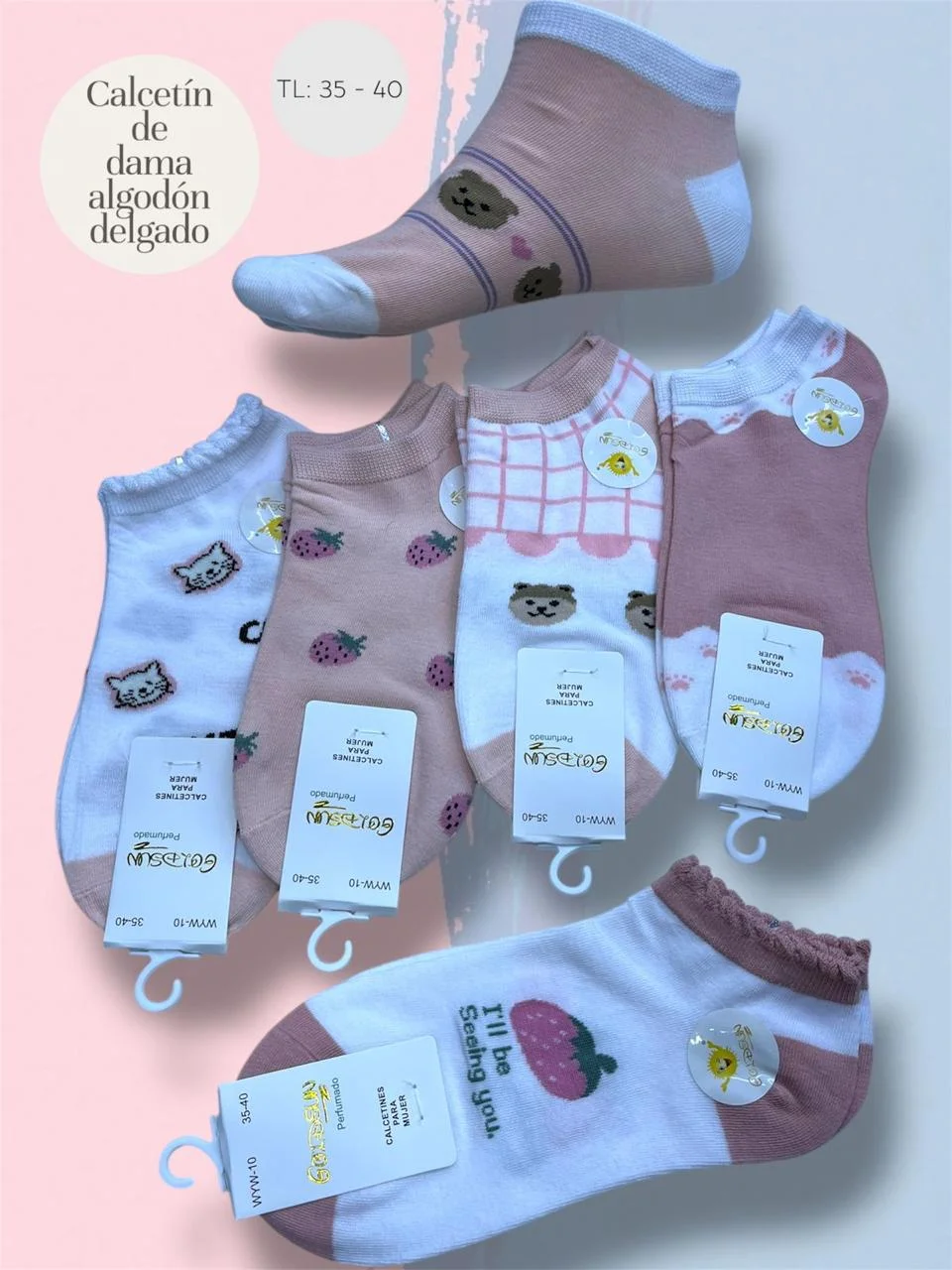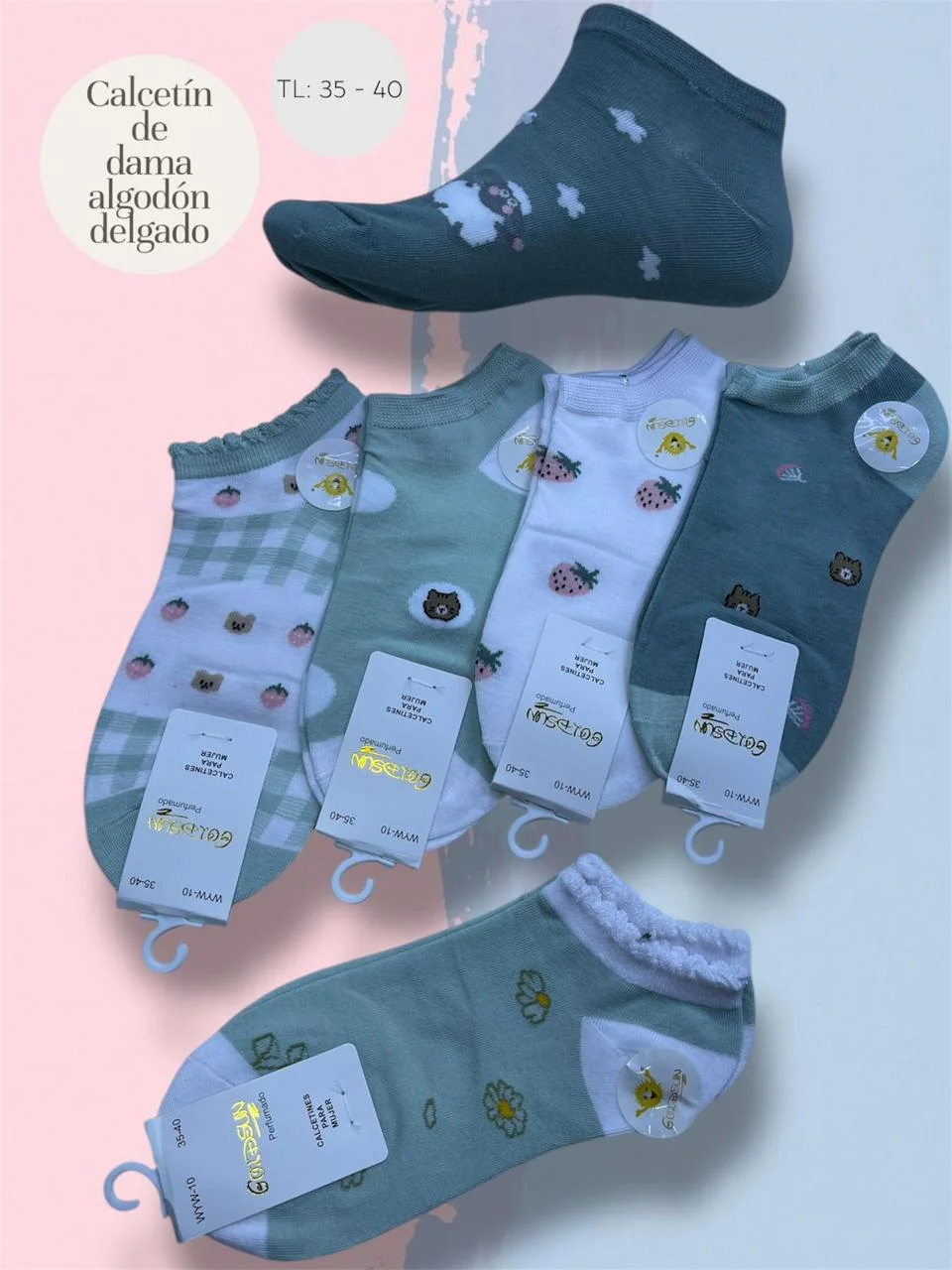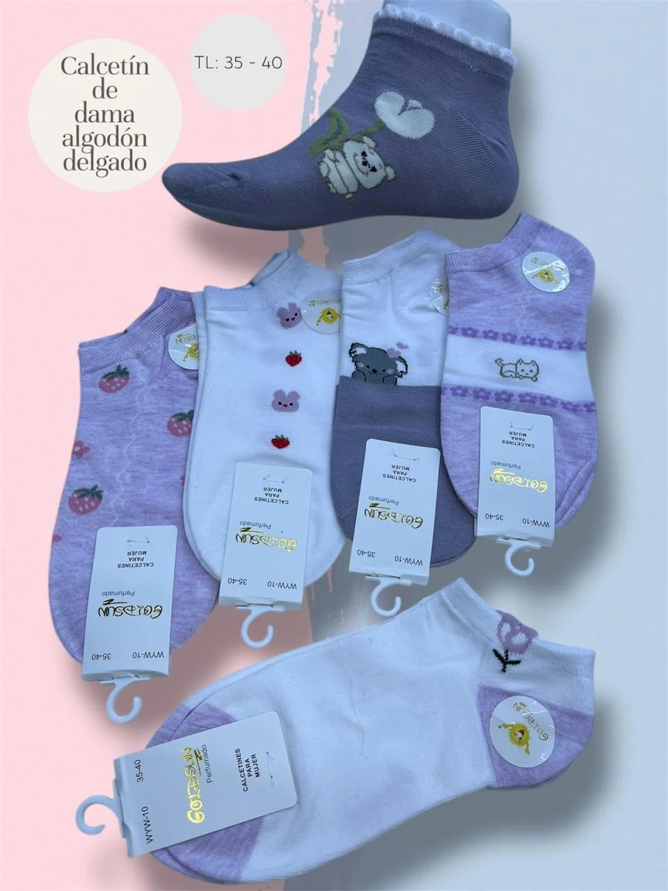 MEDIAS TALONERAS DELGADAS DE ALGODON DISEÑOS PARA DAMA