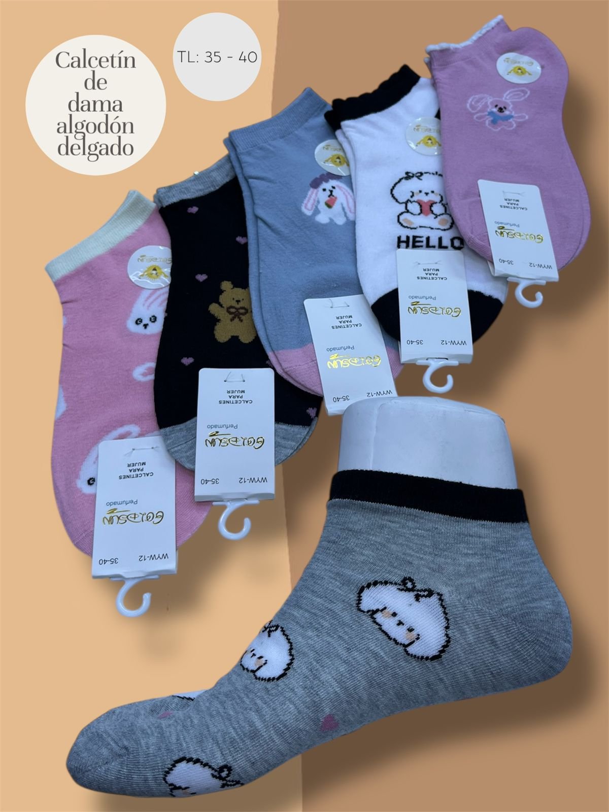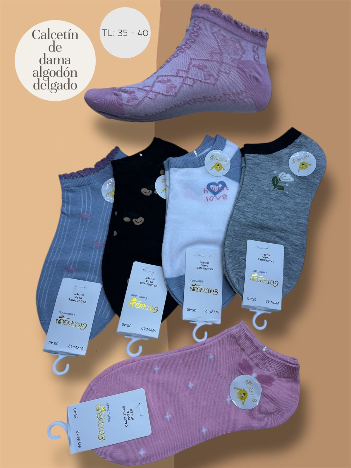 MEDIAS TALONERAS DELGADAS DE ALGODON DISEÑOS PARA DAMA