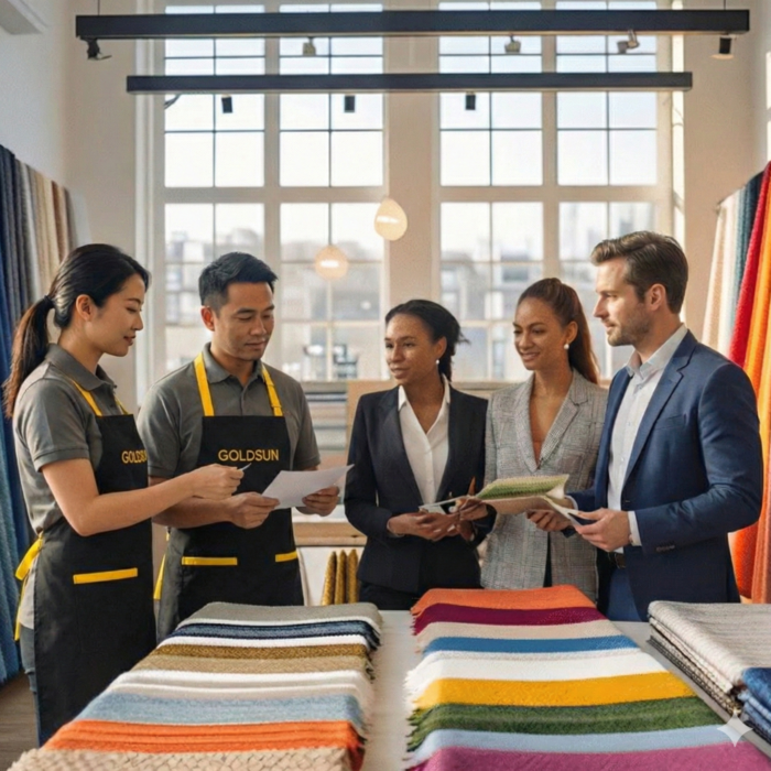 En GRUPO GOLDSUN vivimos con pasión cada detalle de lo que hacemos. Nuestra entrega a la calidad y al servicio nos ha permitido ser un referente para clientes de todo el país y más allá de nuestras fronteras. Trabajamos con profesionalismo, pero también con corazón, porque creemos que el verdadero éxito se construye junto a las personas: nuestro valioso equipo, la innovación constante, la mejora continua de nuestros productos y un compromiso inquebrantable con la industria. Gracias por estar aquí y acompañarnos en este viaje. Queremos mostrarle por qué GRUPO GOLDSUN no es solo un proveedor textil, sino un aliado en el que empresas y personas confían para hacer realidad sus proyectos.